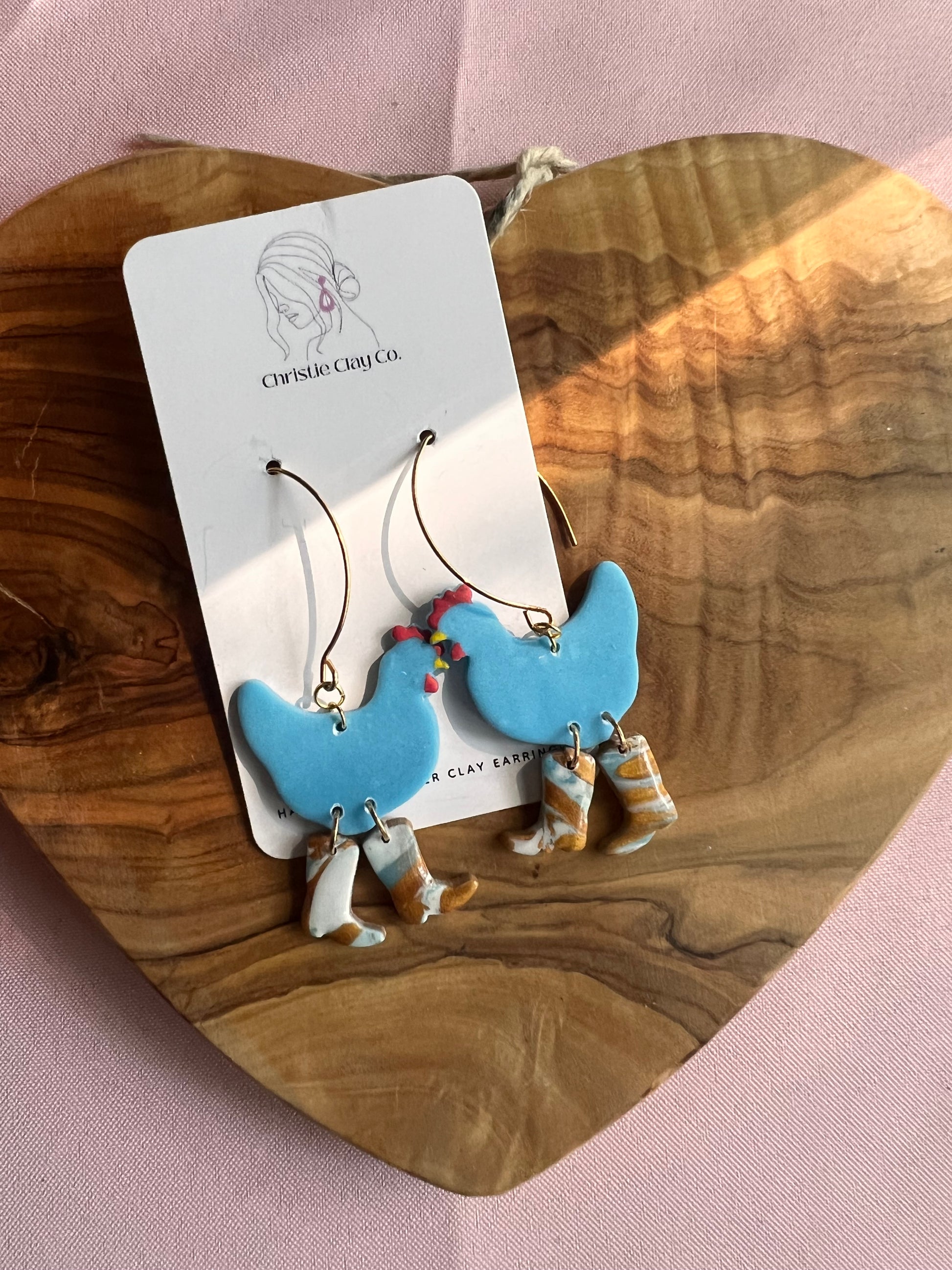 Blue chickens with brown/white/blue resined boots