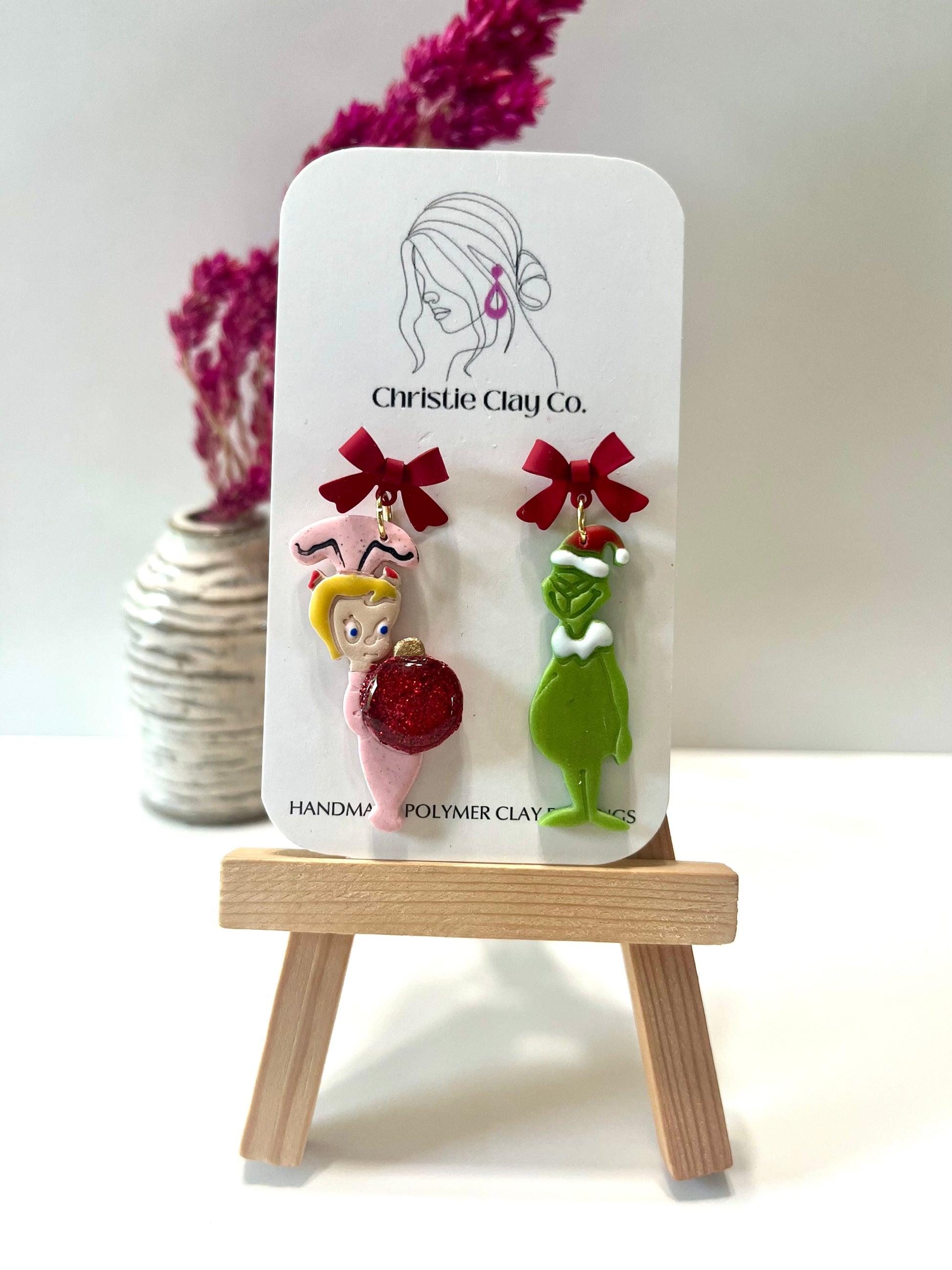 Christmas-Red bows and green meanie with little girl