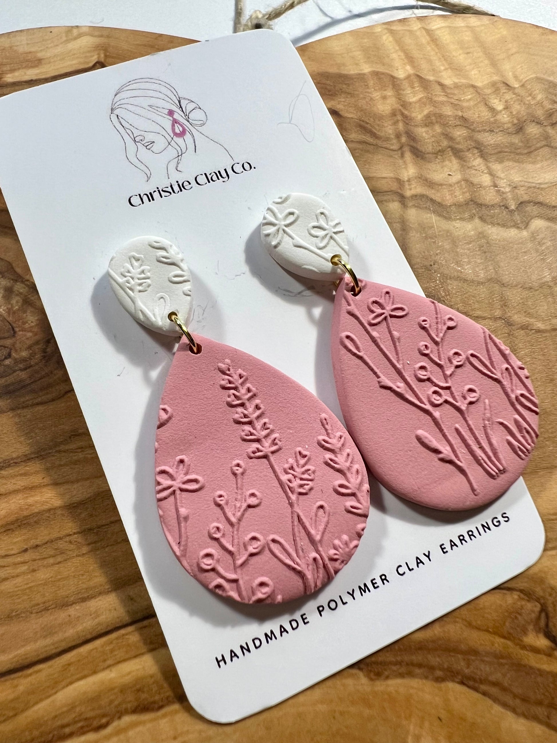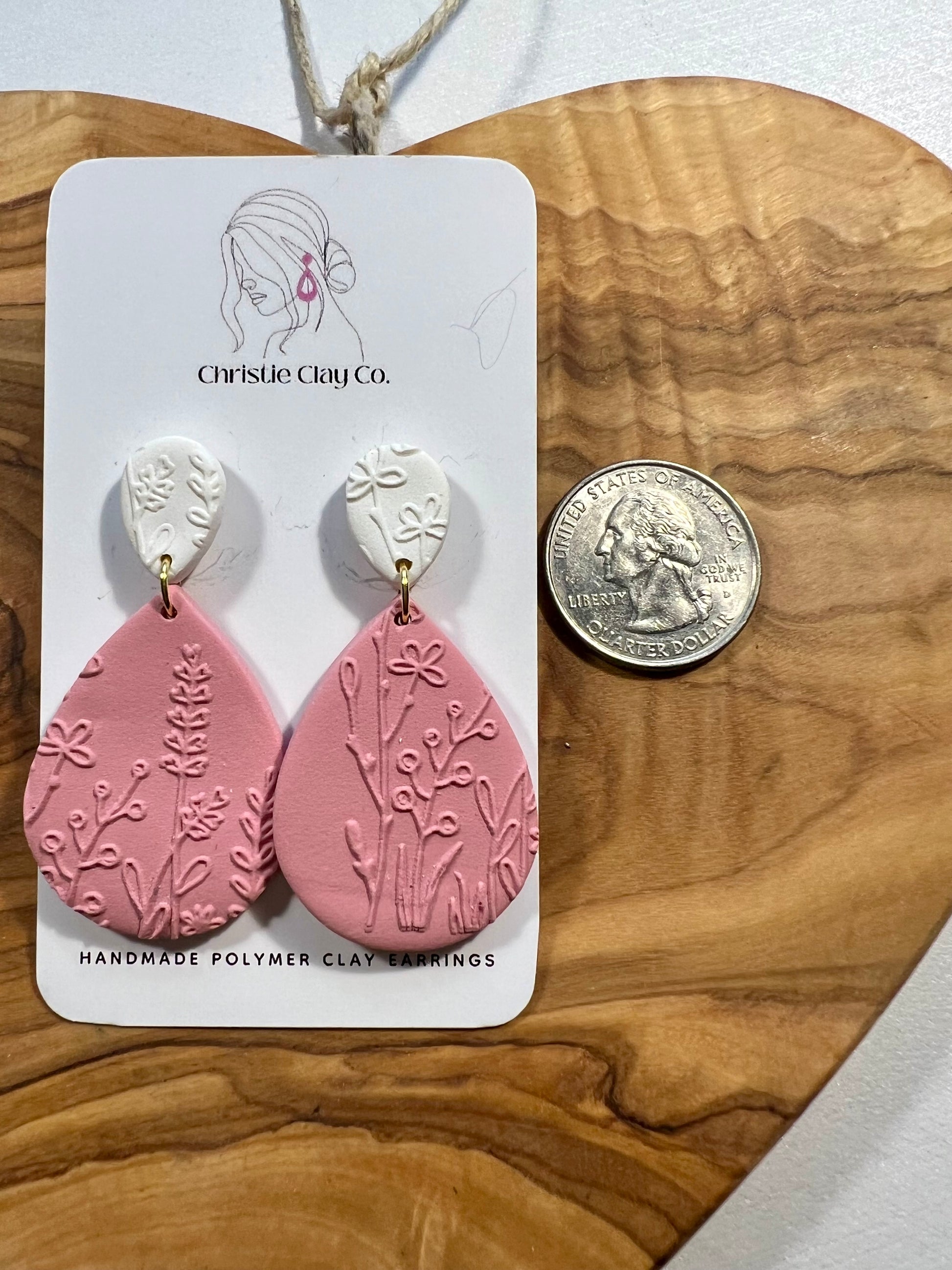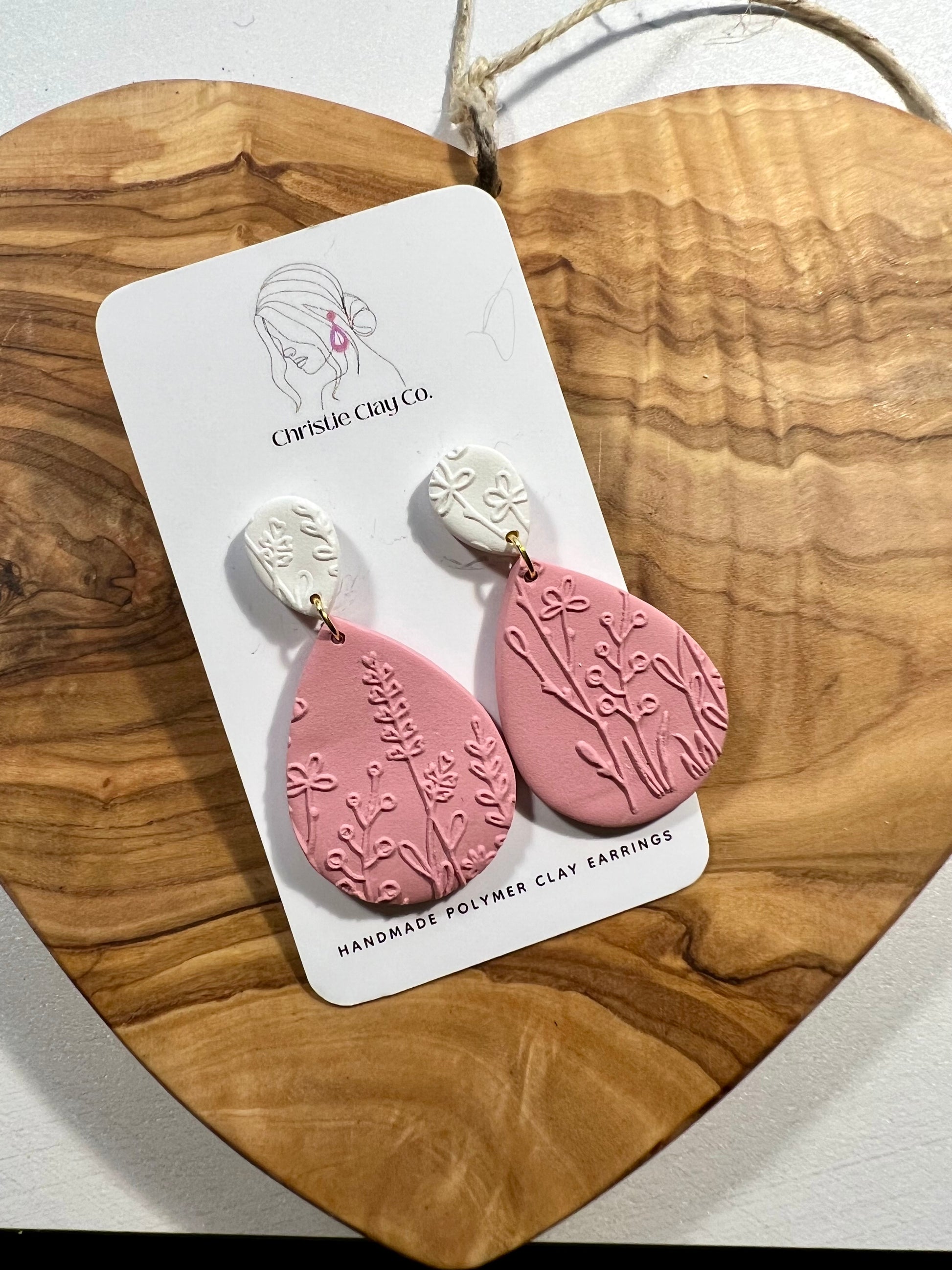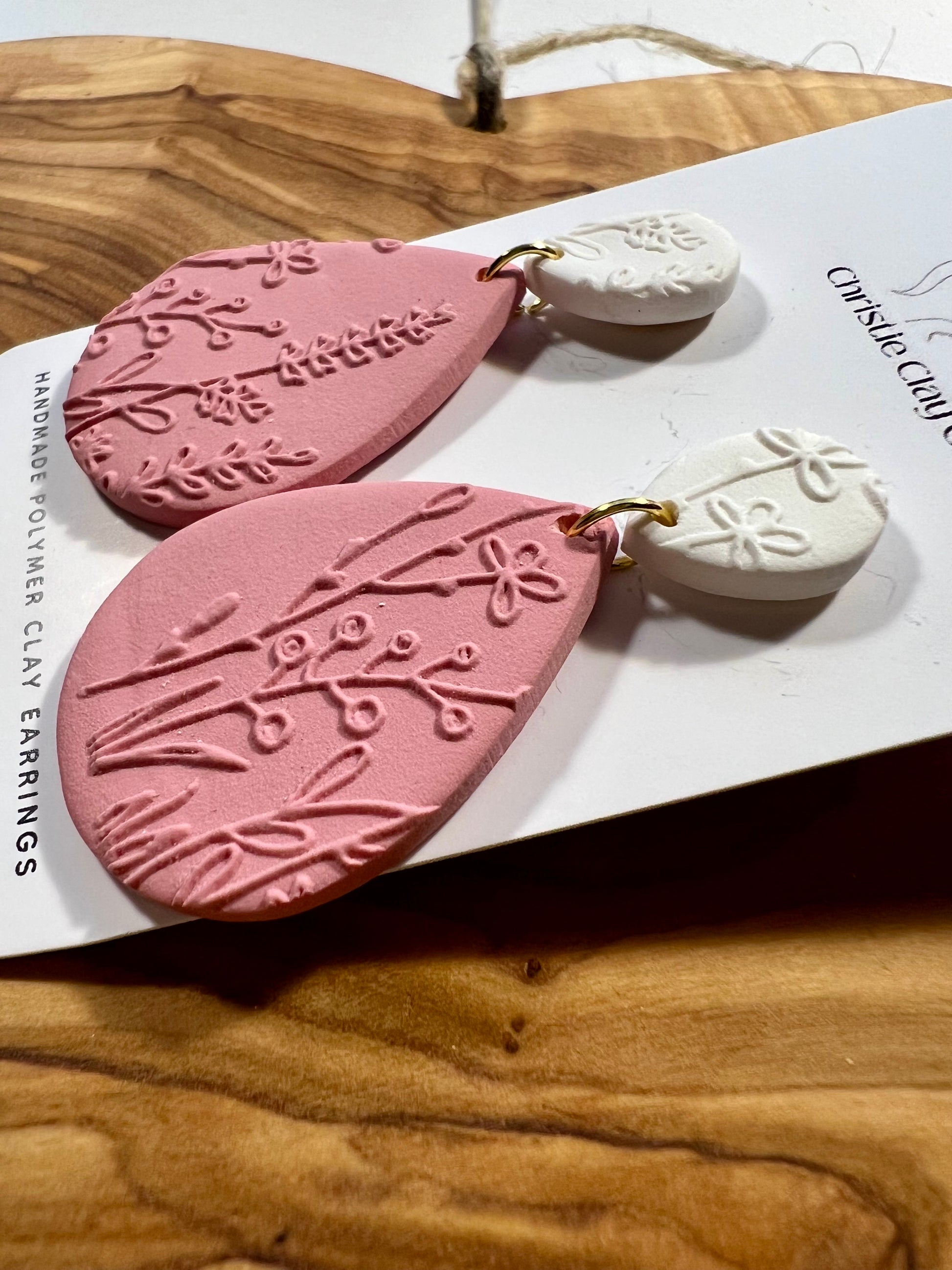 Lightweight polymer clay dangle earrings. Pink and white. From our Spring Collection.