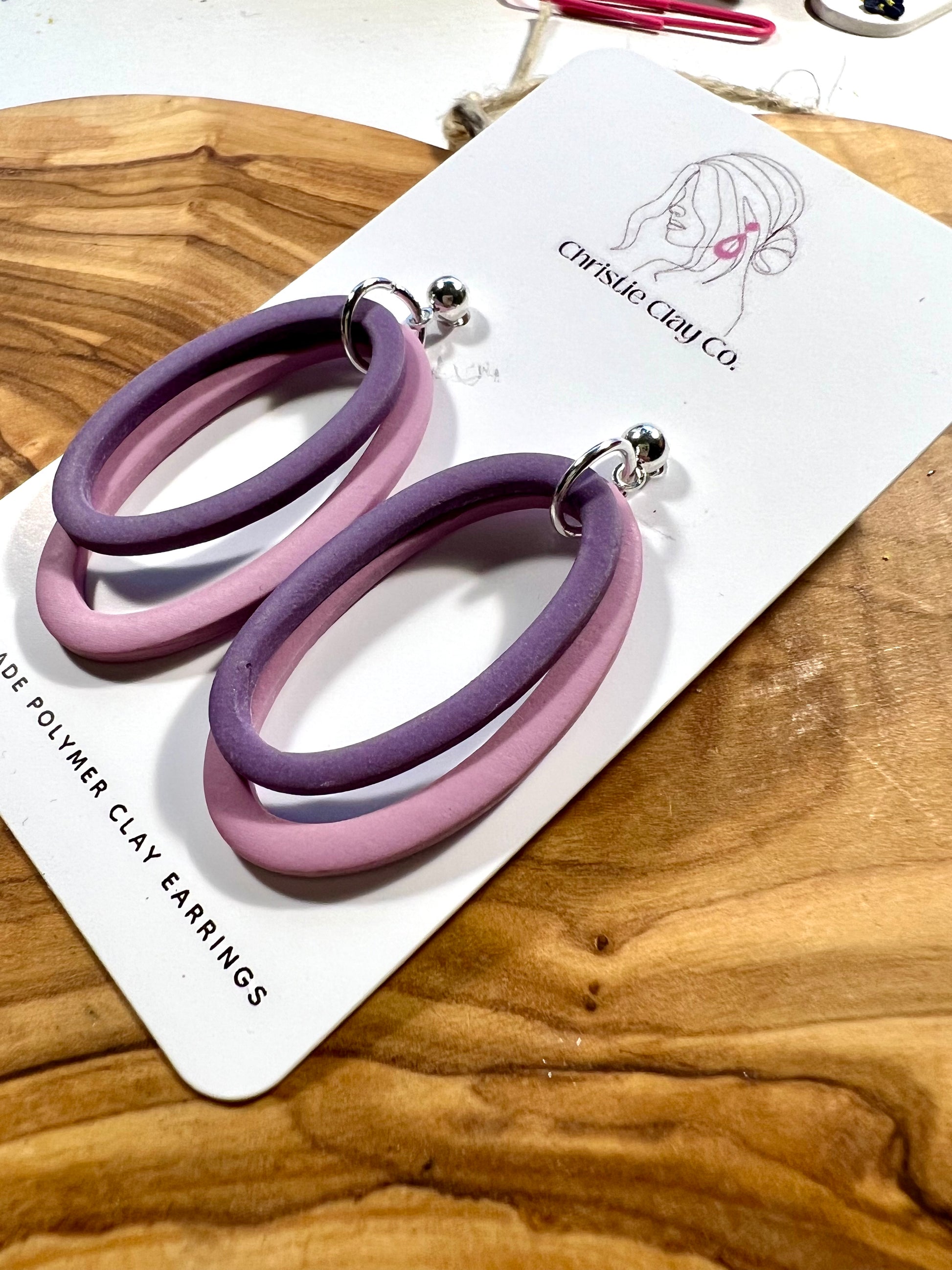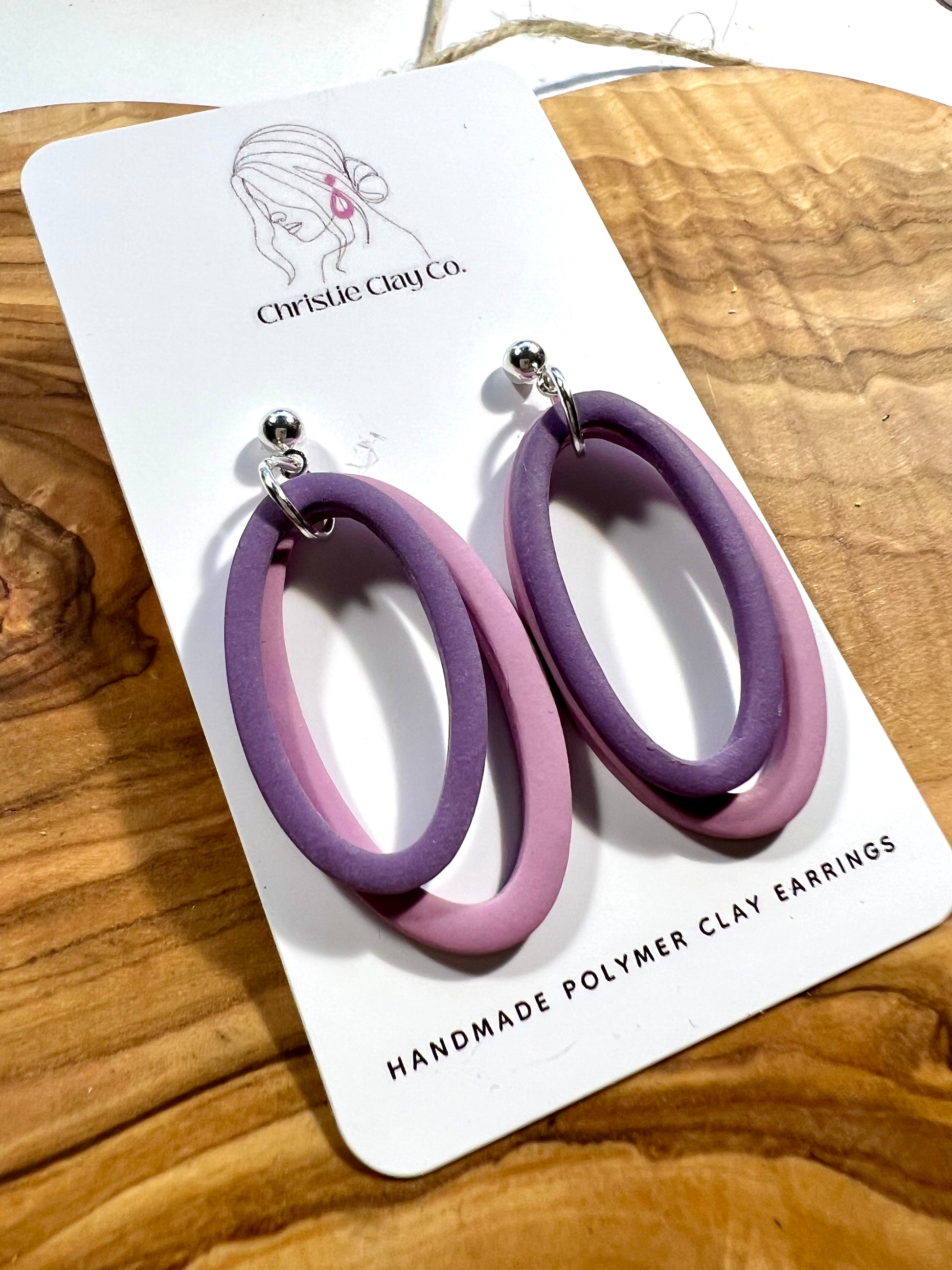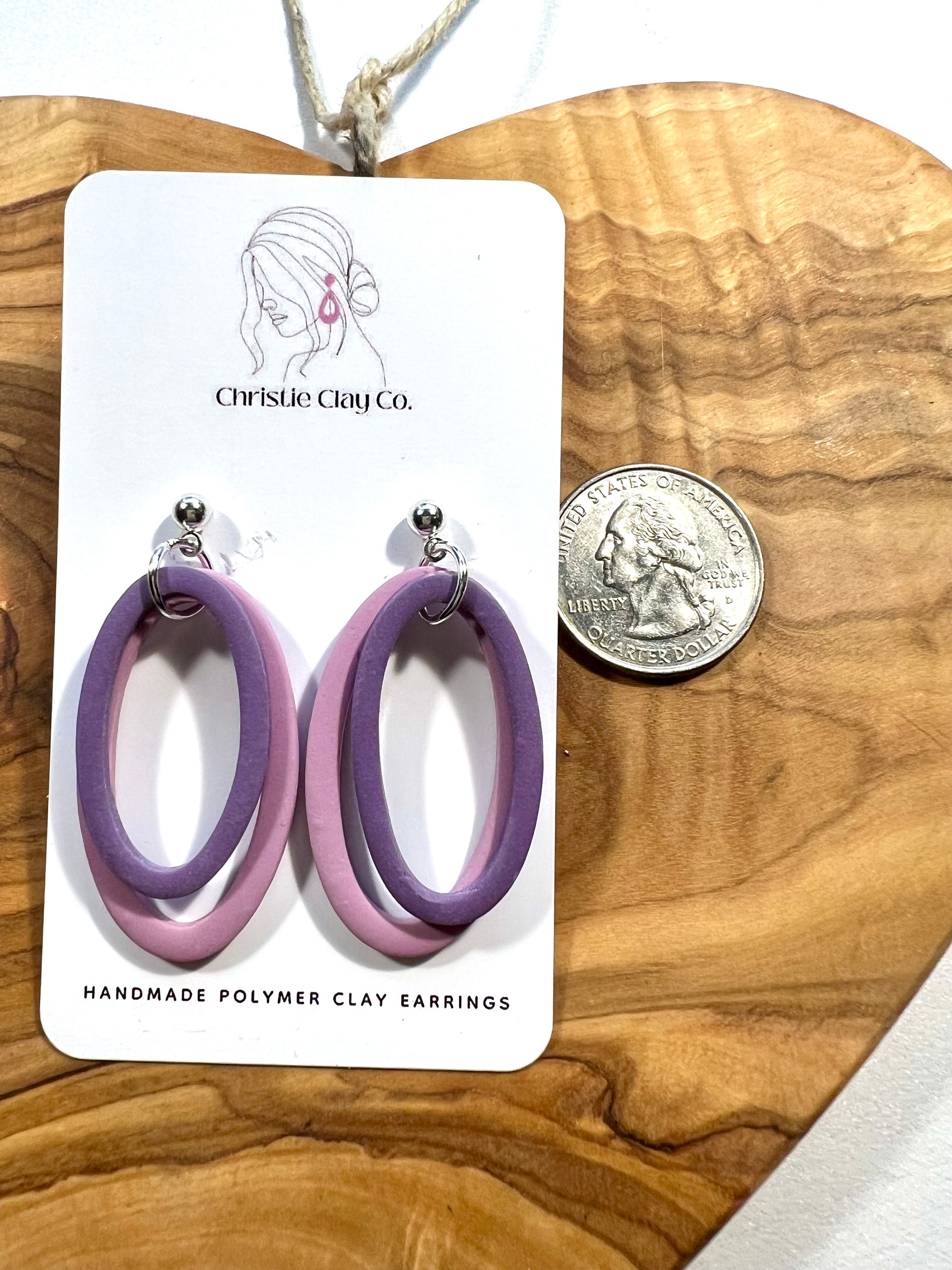 Lightweight polymer clay dangle earrings. Lavender, purple. From our Spring Collection.