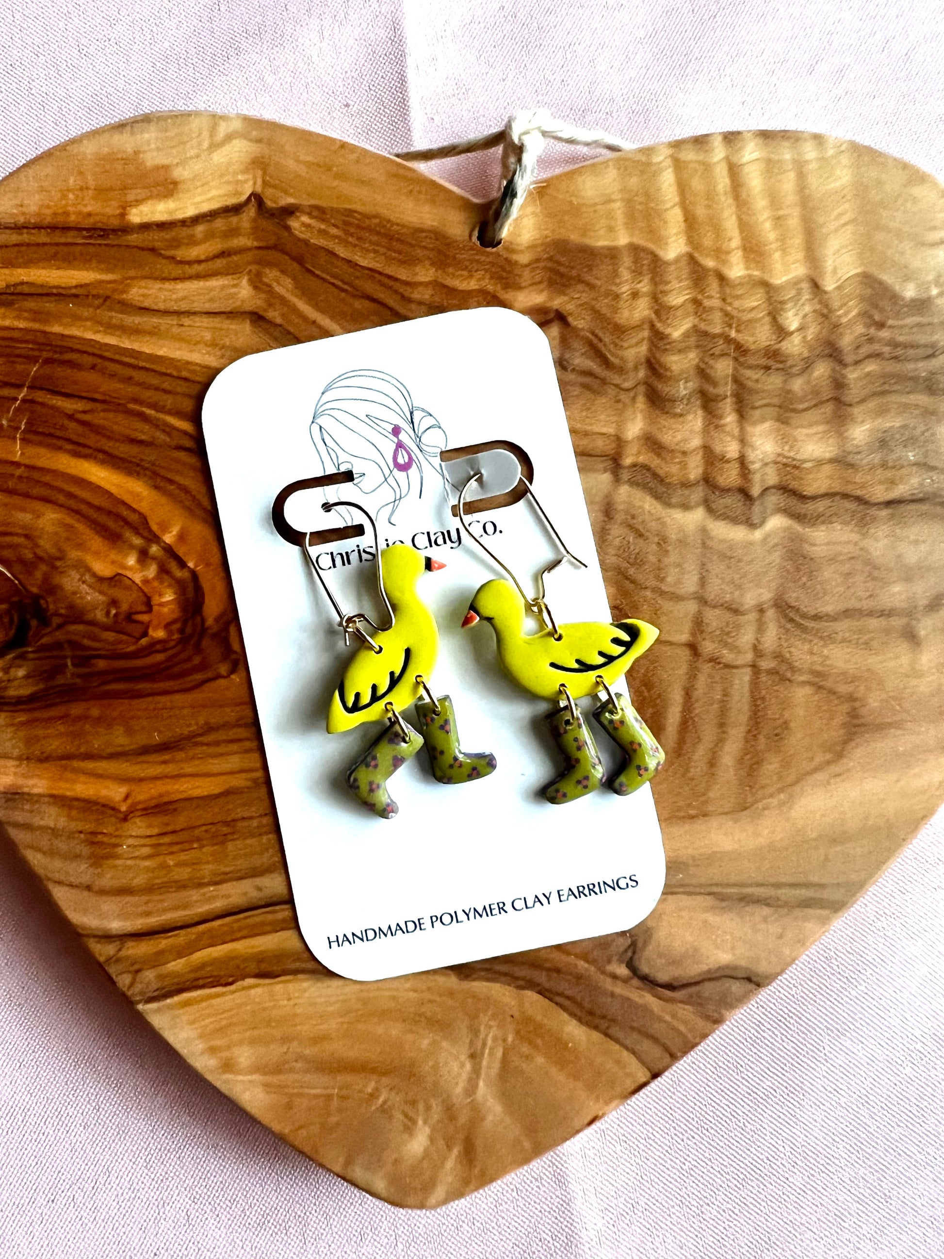 Ducks with hand painted dangle boots