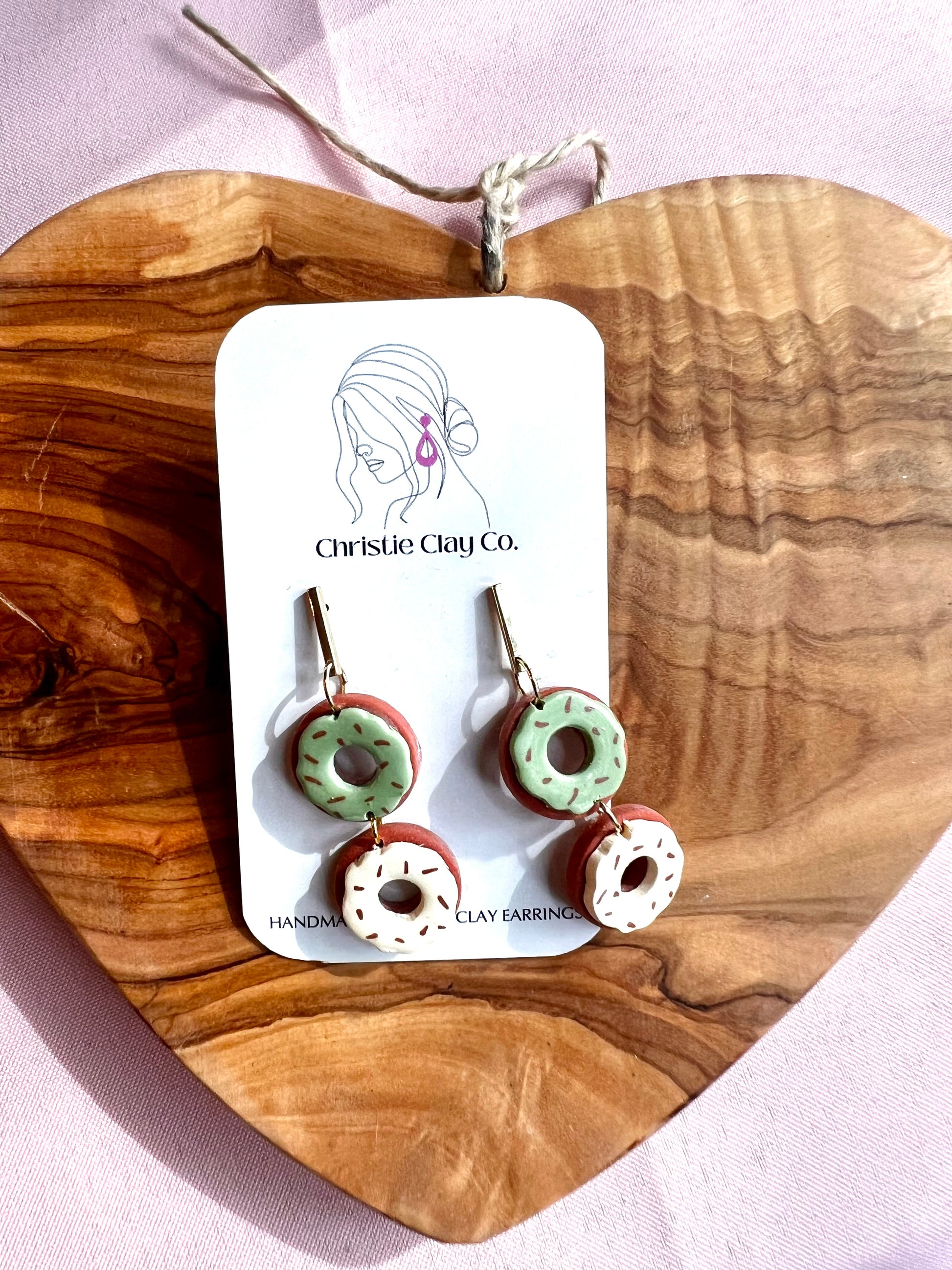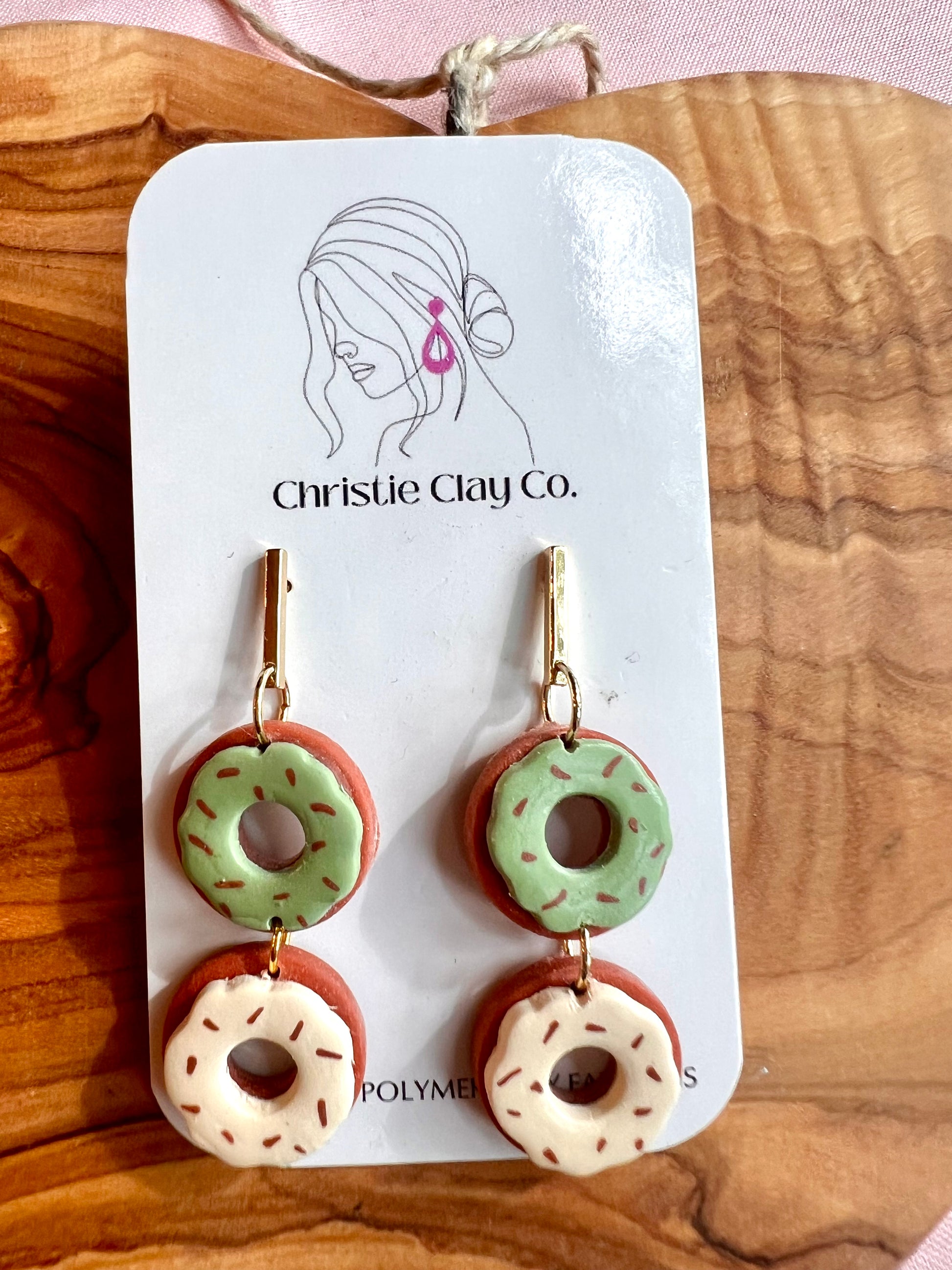 Fall collection. Double doughnut dangle. Cream and green icing.