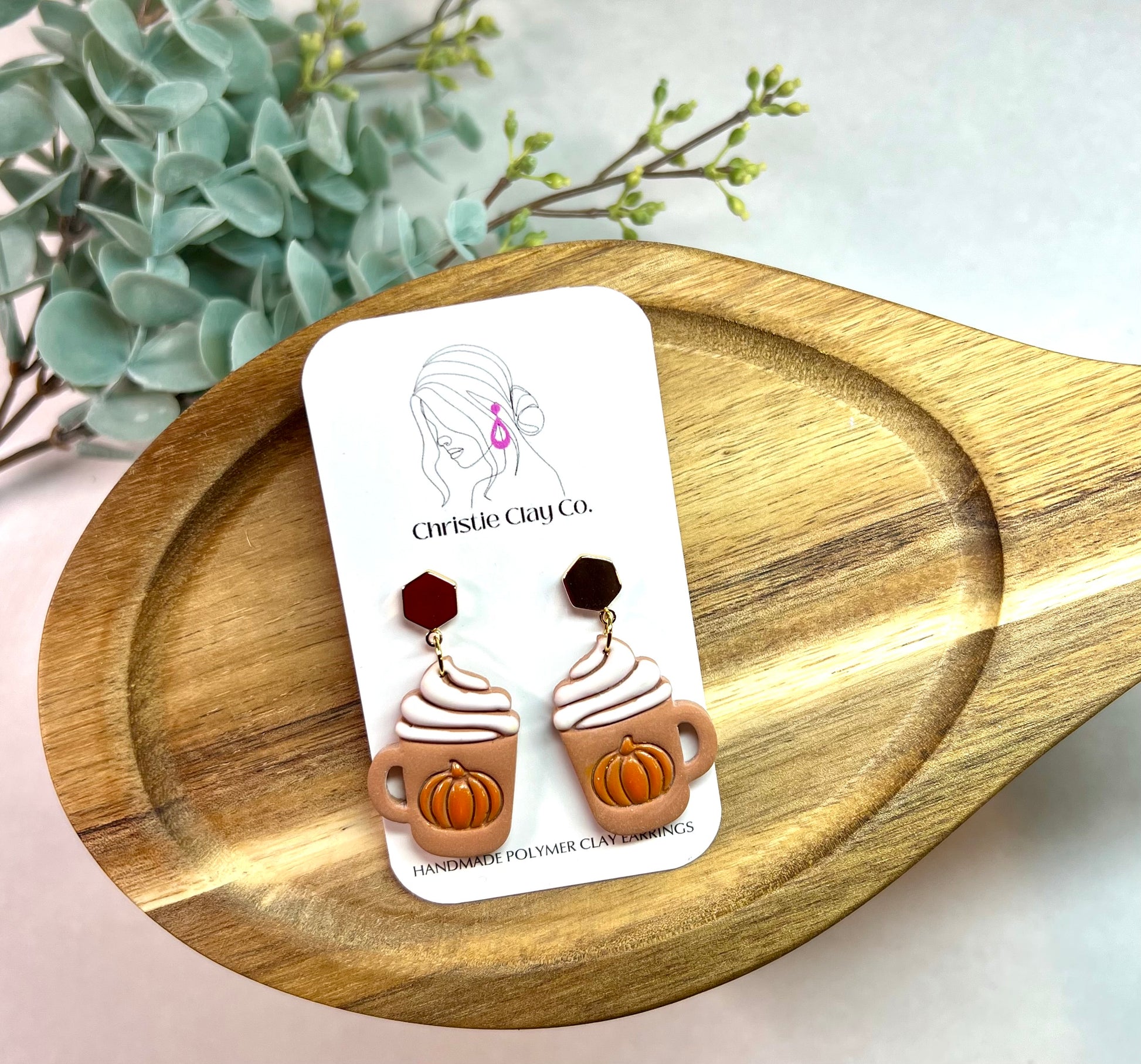 Pumpkin latte with shiny pumpkin. Gold hardware.