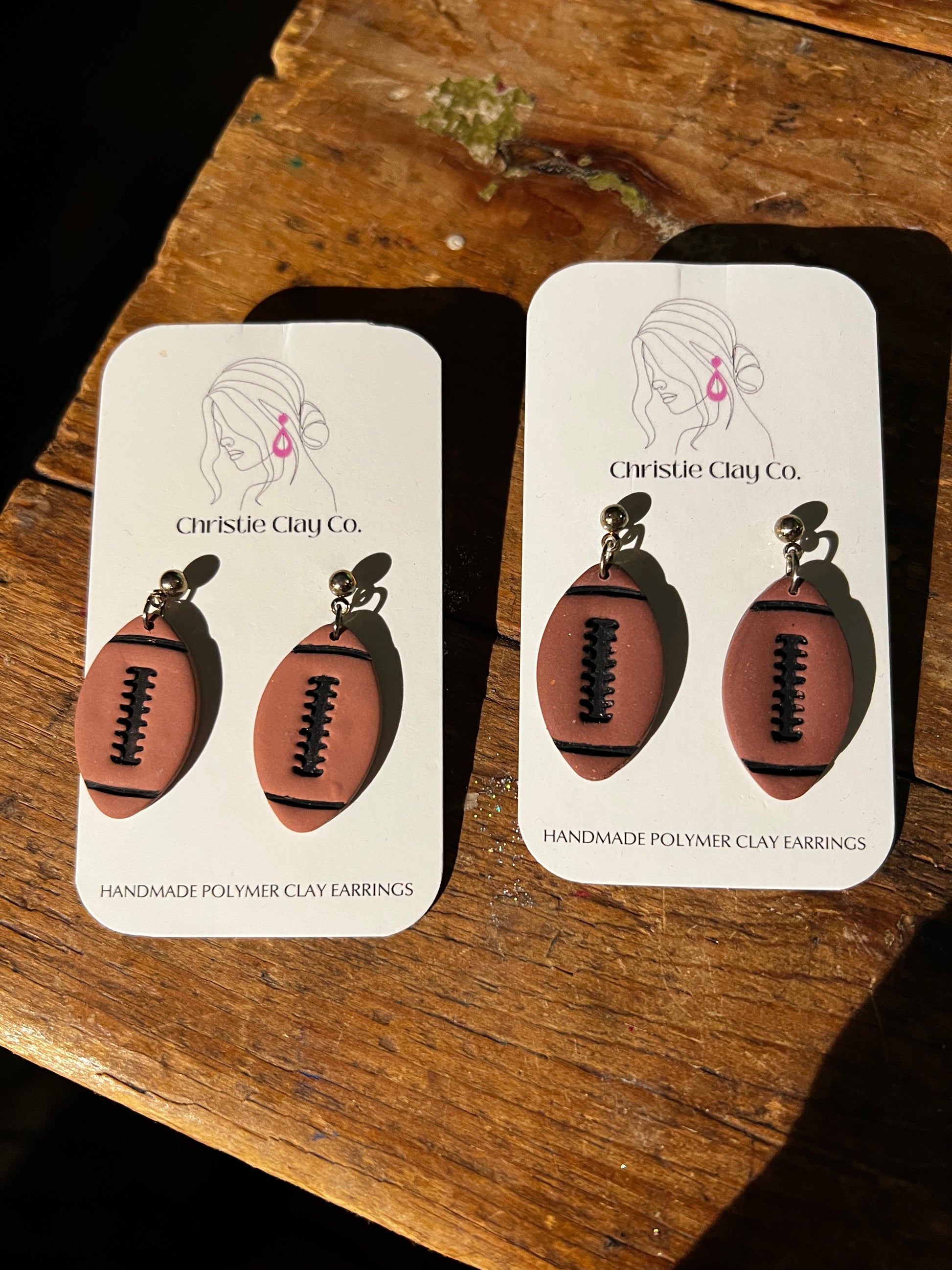 Football dangles with stainless hardware. $22 each