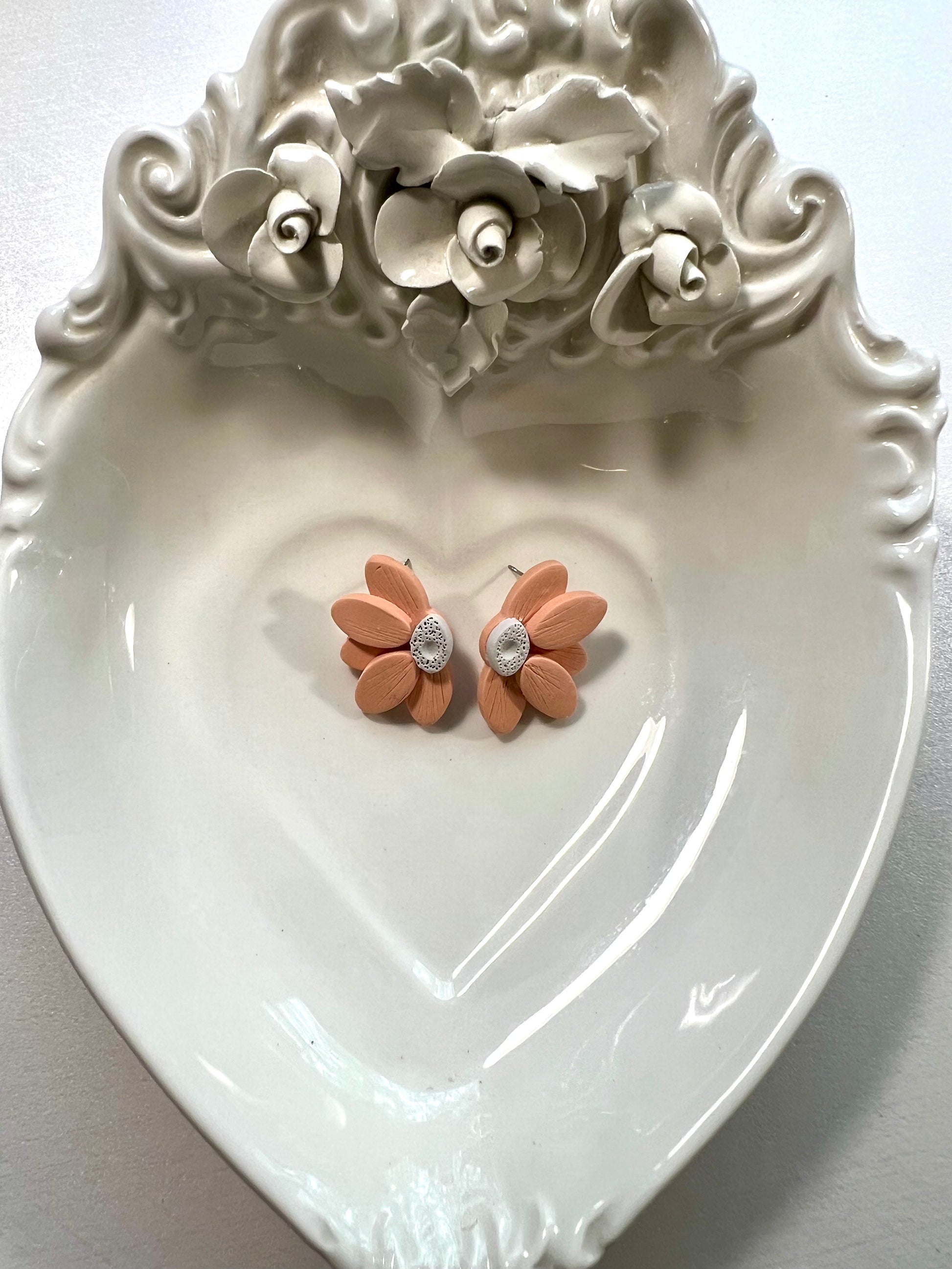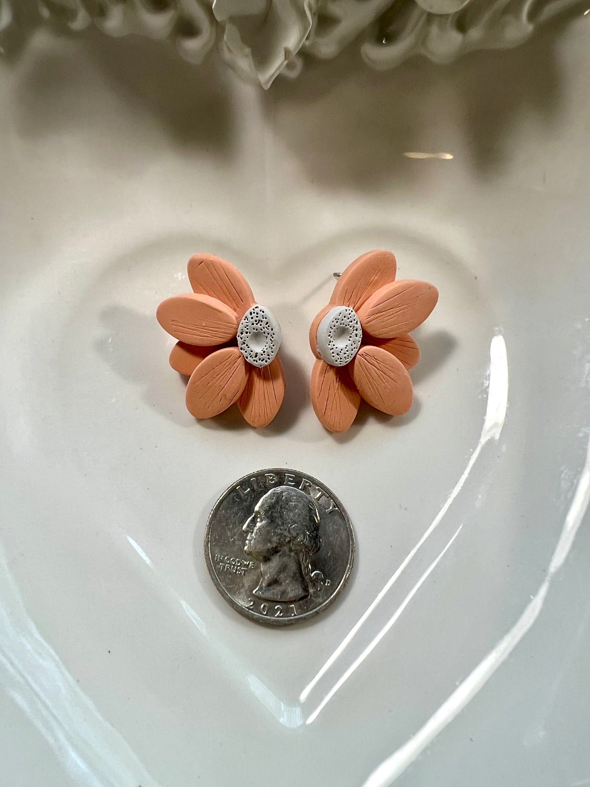 Lightweight polymer clay dangle earrings. Half daisy Apricot color. From our Spring Collection.
