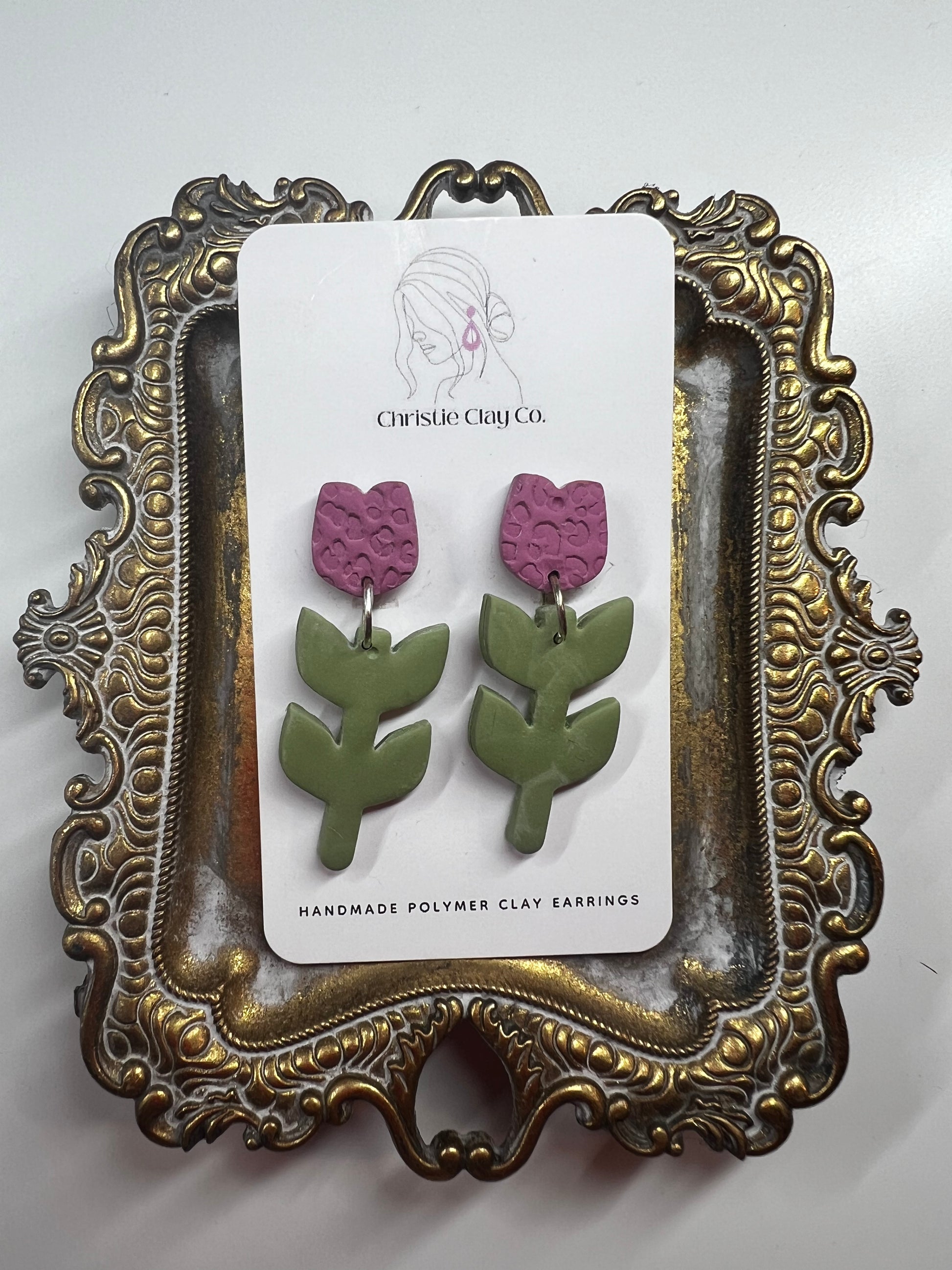 Lightweight polymer clay dangle earrings. Mauve and green. From our Spring Collection.
