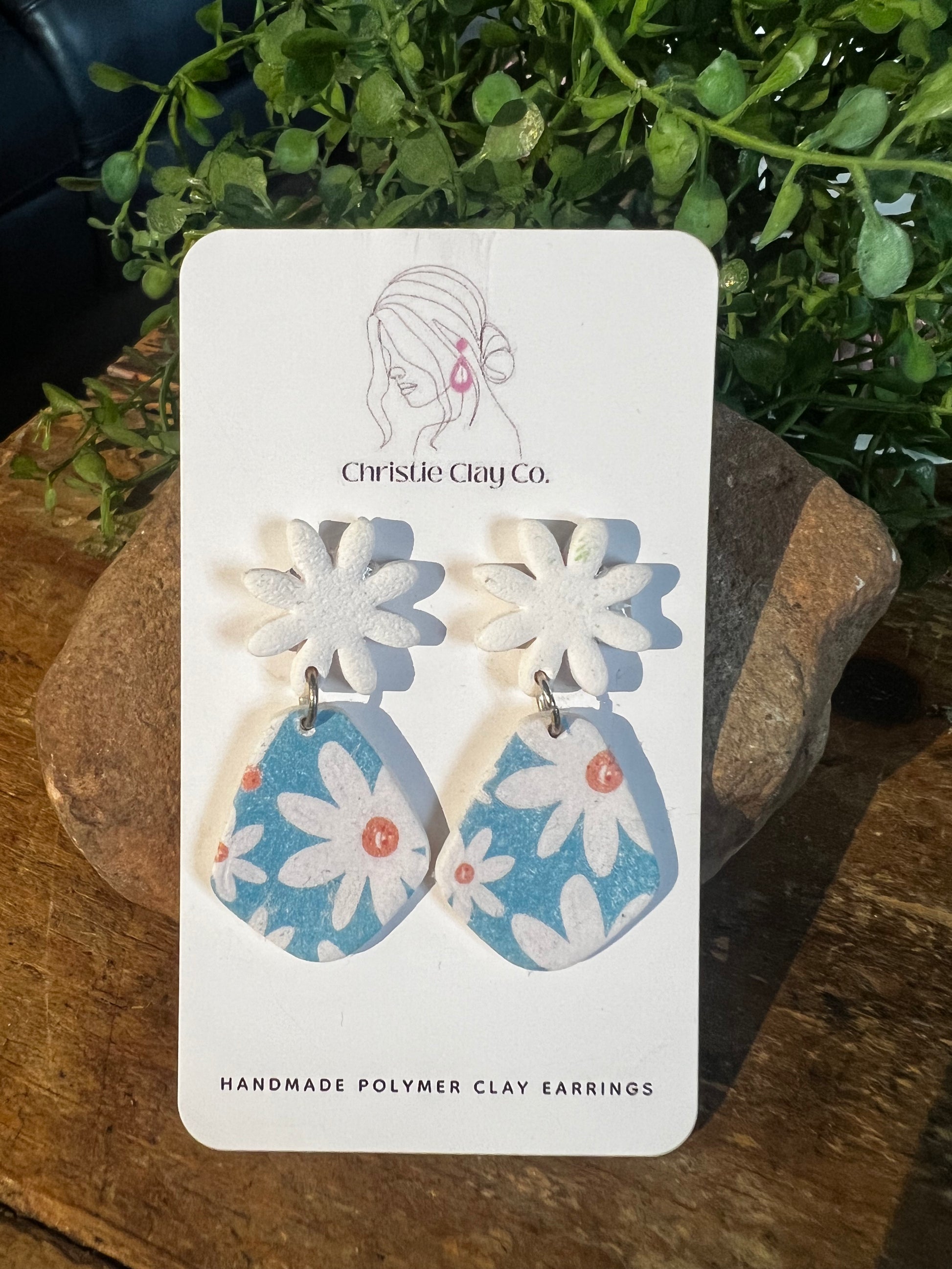 Lightweight polymer clay dangle earrings. Flower drops. From our Spring Collection.