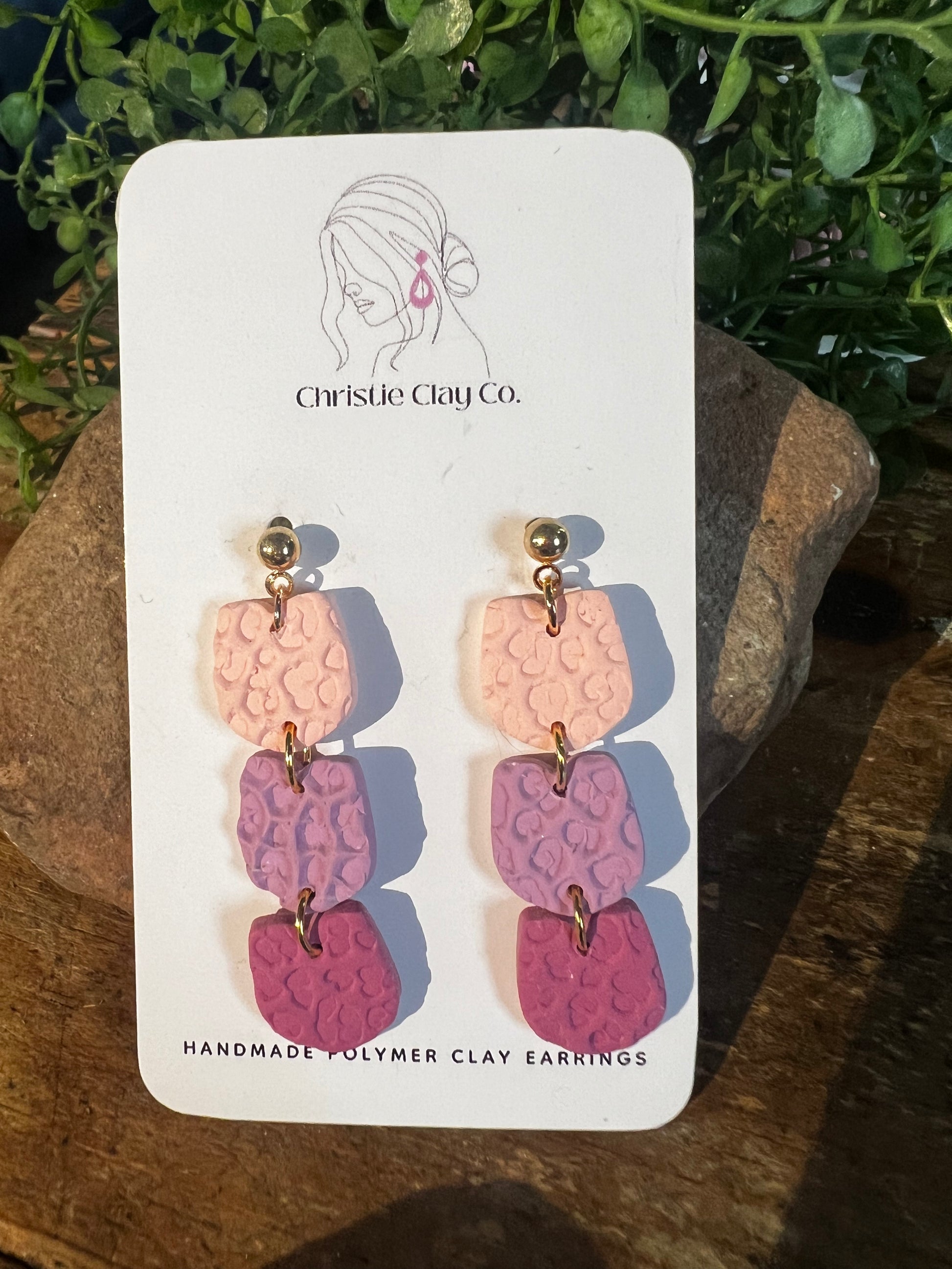 Lightweight polymer clay dangle earrings. Shades of pink. From our Spring Collection.